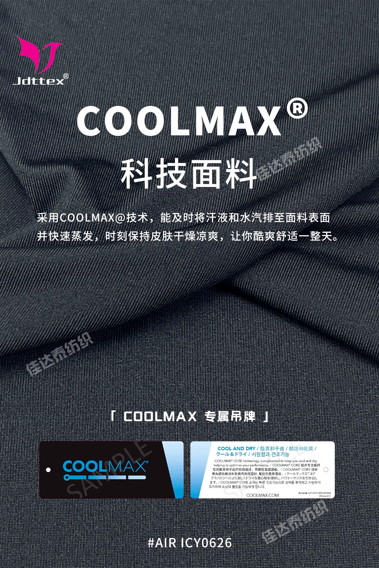 #COOLMAX面料 #COOLMAX吊牌 #吸湿速干面料 #轻薄面料 #运动面料