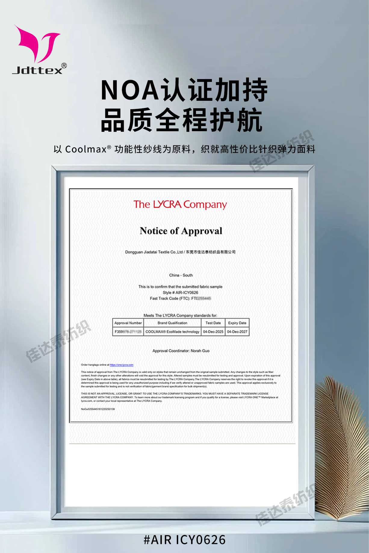NOA 权威检测🧑🔬认证为品质兜底,安全合规 + 性能数据双达标,💕安心穿、放肆动。